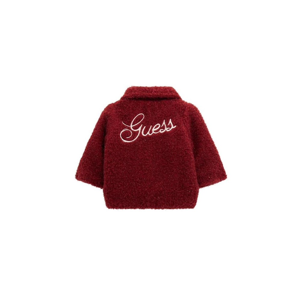 • Παιδικό παλτό μπουκλέ με λούρεξ Guess,μπορντό,με λογότυπο για ξεχωριστές χειμωνιάτικες εμφανίσεις